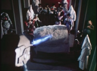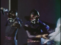 Close on a cocoon. Doommaster, the Vixens, some others and a few Klansmen, all look at the cocoon, when suddenly, VR Ryan zaps it with his Laser Pistol. |