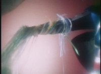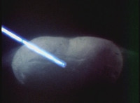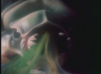 Shot 3 is reversed shot 2 with US added pool from next shot; cuts follow-ups of orb landing in pool of blood, which sends the blood upward. |