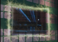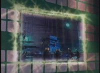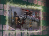 Karl Ziktor morphs into Grimlord, teleporting up to his Dark Fortress above, which floats through the virtual dimension. |