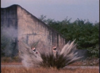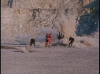 Cuts prior shot of the baddies exiting a smoking cavern. |