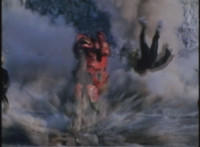Cuts prior sequence of VR JB & Kaitlins attacking Serpentoid; cuts follow-ups of the trio being blasted. |