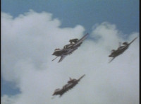 A trio of Air Fighters fly forth, viewed from a slightly downward angle. |