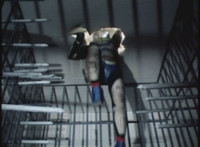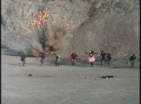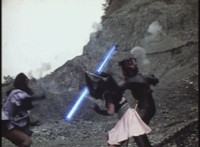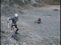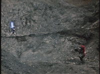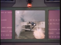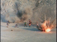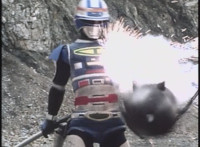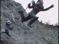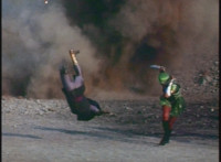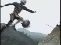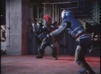 Transitions out; cuts follow-ups of more fighting (which takes place on the VR Blue Hawk, until they end up dropping down into a quarry and fight more). |