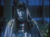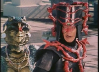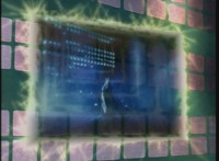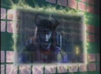Karl Ziktor morphs into Grimlord, teleporting up to his Dark Fortress above, which floats through the virtual dimension. |