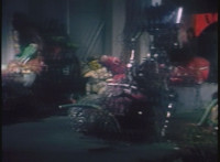 General Ivar enters a room full of clutter, Knighttime behind him, as he points and talks, the clutter revealed to be loads of spare parts and junk related to robots used in previous episodes. |