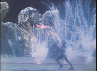 Struck by the energy beam, Gargantus explodes massively. |