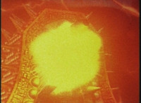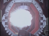 An explosion erupts upon a reactor core looking matte painting. |