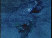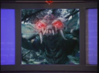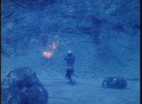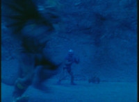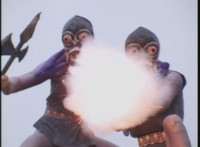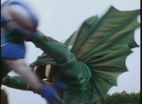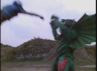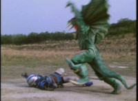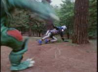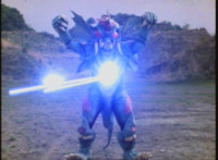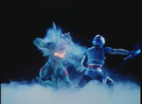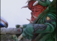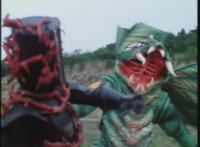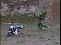 VR Ryan falls on his back, but recovers, backs up from Charmador, then pulls out his Laser Pistol and fires upon him, only for the beams to charge up the mutant, who returns the energy as a bolt that explodes the ground before VR Ryan. He rolls to safety and recovers, then suddenly looks up to see Doommaster atop a nearby cliff with a gang of Ultra-Skugs. There's some dialogue exchanged between VR Ryan and Doommaster. Charmador hobbles forth quickly, so VR Ryan leaps at him and punches, only to get his arm grabbed and then thrown over. Charmador then picks up the downed VR Ryan, and pitches his whole body into the air. He quickly recovers, pulls out his VR Laser Saber, readying it. |