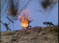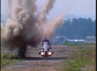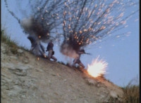 Cuts prior shot of VR Ryan on Cycle arriving on scene; shots 7 & 8 are switched from source positions; cuts additional explosions behind Cycle in between shots 26 & 27. |