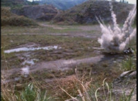 VR Ryan uncrouches as dirt burst before him subsides. |