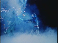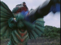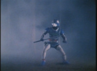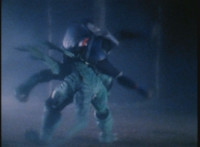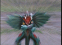 Doommaster rushes to attack the downed VR Ryan, when he suddenly pauses and looks back skyward. |