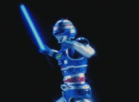 VR Ryan readies his VR Laser Saber, charging the blade up and twirling it about as it trails against a sparkly backdrop. |