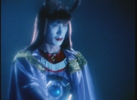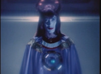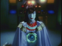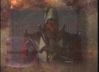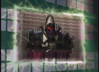 Karl Ziktor morphs into Grimlord, teleporting up to his Dark Fortress above, which floats through the virtual dimension. |