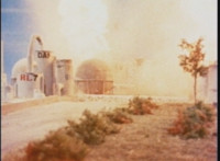 Explosions erupt around VR JB from a distance. |