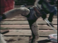 Cuts follow-up of VR JB stabbing Bazookabot in the gut, then slashing him. |