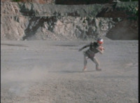 VR JB is thrown into an empty quarry, but quickly recovers and faces our slight left, before summoning into the sky. |