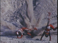 VR JB flips over away from one explosion just for another to erupt near where he lands. |