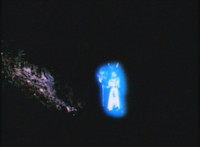 The blue energy materializes into Despera, who glows as she glides across the area and soon fades away. |