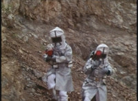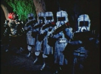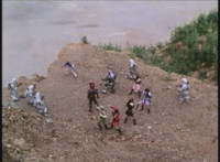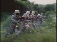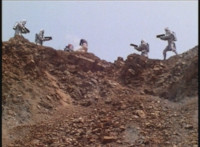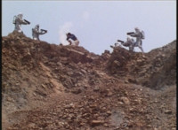 Fogbot leads Doommaster and the Vixens across a field. A pair of Fogatrons rush down a hillside. |