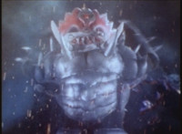 Karl Ziktor morphs into Grimlord, teleporting up to his Dark Fortress above, which floats through the virtual dimension. |