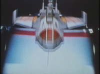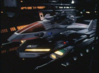 The Blue Hawk undocks from the VR Combat Module in the Shuttle's hangar, and flies down the tunnel, exiting the Shuttle. |