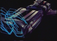 Cuts follow-up of VR Shoulder Cannon Shuttle flying in. |