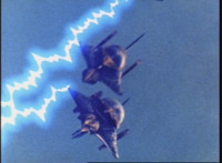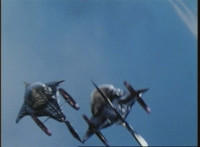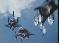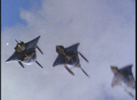 A trio of Grimstars barrel roll toward and over us, as Blue Hawk follows right behind them. |