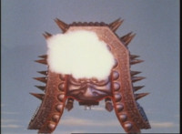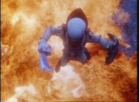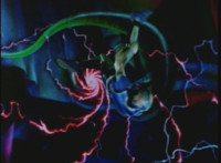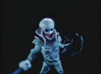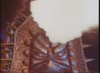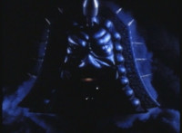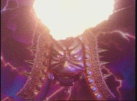 Karl Ziktor morphs into Grimlord, teleporting up to his Dark Fortress above, which floats through the virtual dimension. |
