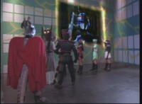 Cuts follow-ups of VR Shoulder Cannon Shuttle's robot form vs Gargantus and Grimstars. |