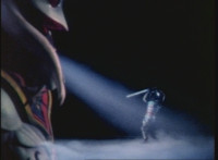 Crossfades into next shot; cuts follow-up of Oraclon talking. |