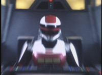 Sharp zoom in on VR Ryan nod-talking as he pulls his VR Nitrocycle to a park in the road. |