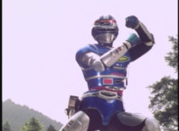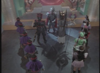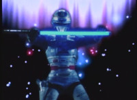 Clockwise from upper left: VR Ryan's original transformation sequence (yes, his old armor); VR Ryan clashes blades with Ultra-Skugs; Ryan hangs out by his motorcycle next to the temple; VR Ryan twirls his glowing Laser Saber about; then center shot is Ryan smiling beside the temple. |