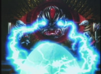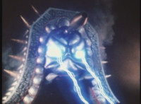 Gargantus floats out of smoke and fires eyebeams downward. |