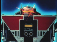 Close on the unnamed VR Shoulder Cannon Shuttle's Troopertron mode as its eyes flash. |