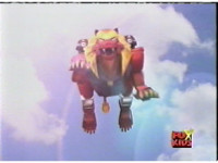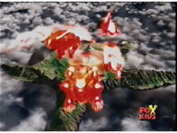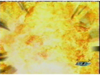 Comes from the commercial bumper, or eyecatch. Though the explosion background is missing from that. Hmm. Dissolves out. |