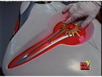 Red places his Crystal Saber in the slot. |