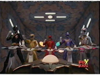 Zoom out from Red as the five Rangers motion their fists in the cockpit. |
