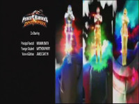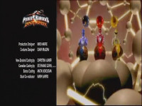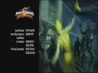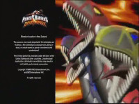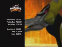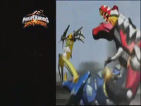 Zoom in, close, on the roaring heads of the three Dinozords against a fire backdrop. |
