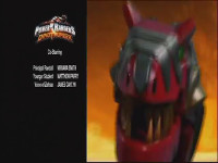 Red on his Raptor Rider twirls his Tyranno Staff around and slashes at the camera. |