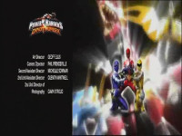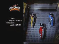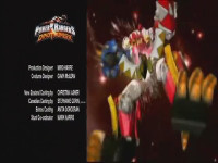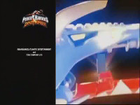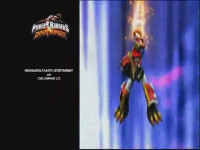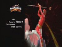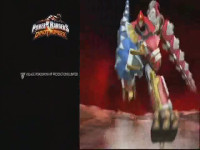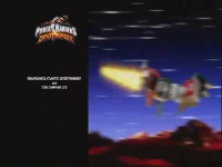 Thundersaurus Megazord spins its left tail-arm as it flies straight upward. |