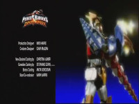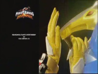 Thundersaurus Megazord tosses the glowing Pterarang forth. |