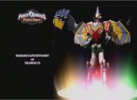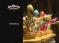 Zoom out as the five Mystic Force Rangers stand posed before a golden seal. |