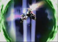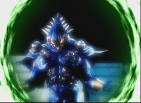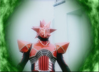 RIC arrives, transforms, the SPD Rangers use him to fire on Orangehead, who fires back with his sword's energy slash, there's a struggle of blasts, with the Rangers the victory. |