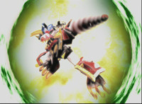The Thundersaurus Megazord performs its first finisher. |