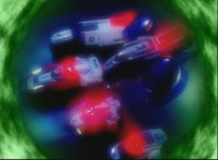 All footage in this episode is given a green vortex effect around the edges. Recycled. |