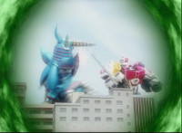 Delta Squad Megazord battles Giganis. |