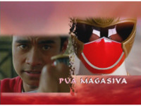 Navy Thunder backflips into his Navy Beetlezord. |
