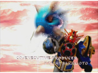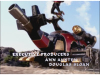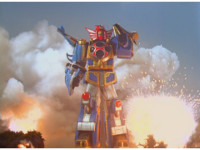 Storm Megazord finishes performing its finisher attack. |