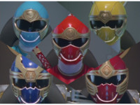 Visors opened, each of the Wind Rangers smile. |