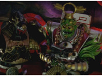 The thunder symbol on a purple... err, crimson Shoji screen. |